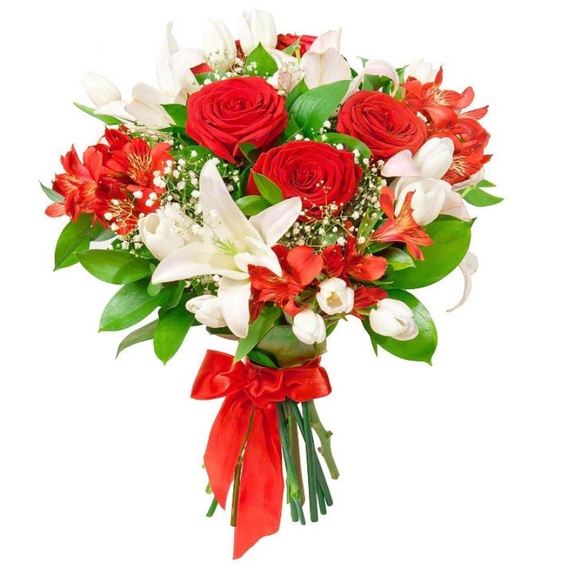 Альстромерия, Гипсофила, Лилия, Роза, Тюльпан |