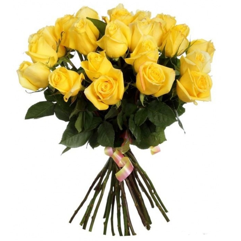 Букет состоит из 21 желтая роза, лента.